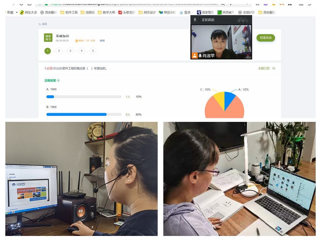 上午8点25分,云端课堂正式开启,西译全体师生以良好的精神面貌迎接新学期的到来。据统计,开学第一日,全校开出课程门次数671门次,课程门数375门,任课教师414人,32337人次通过西安翻译学院课程中心(学习通)、腾讯课堂、腾讯会议等线上教学平台进行在线学习。为确保学期初线上教学秩序,提升课堂教学质量,深入推进学风建设,教务处联合教学质量监控与评估处对各学院线上教学准备工作和线上教学运行情况开展了教学检查。检查显示,教师备课充分,学生认真听课,线上教学井然有序。