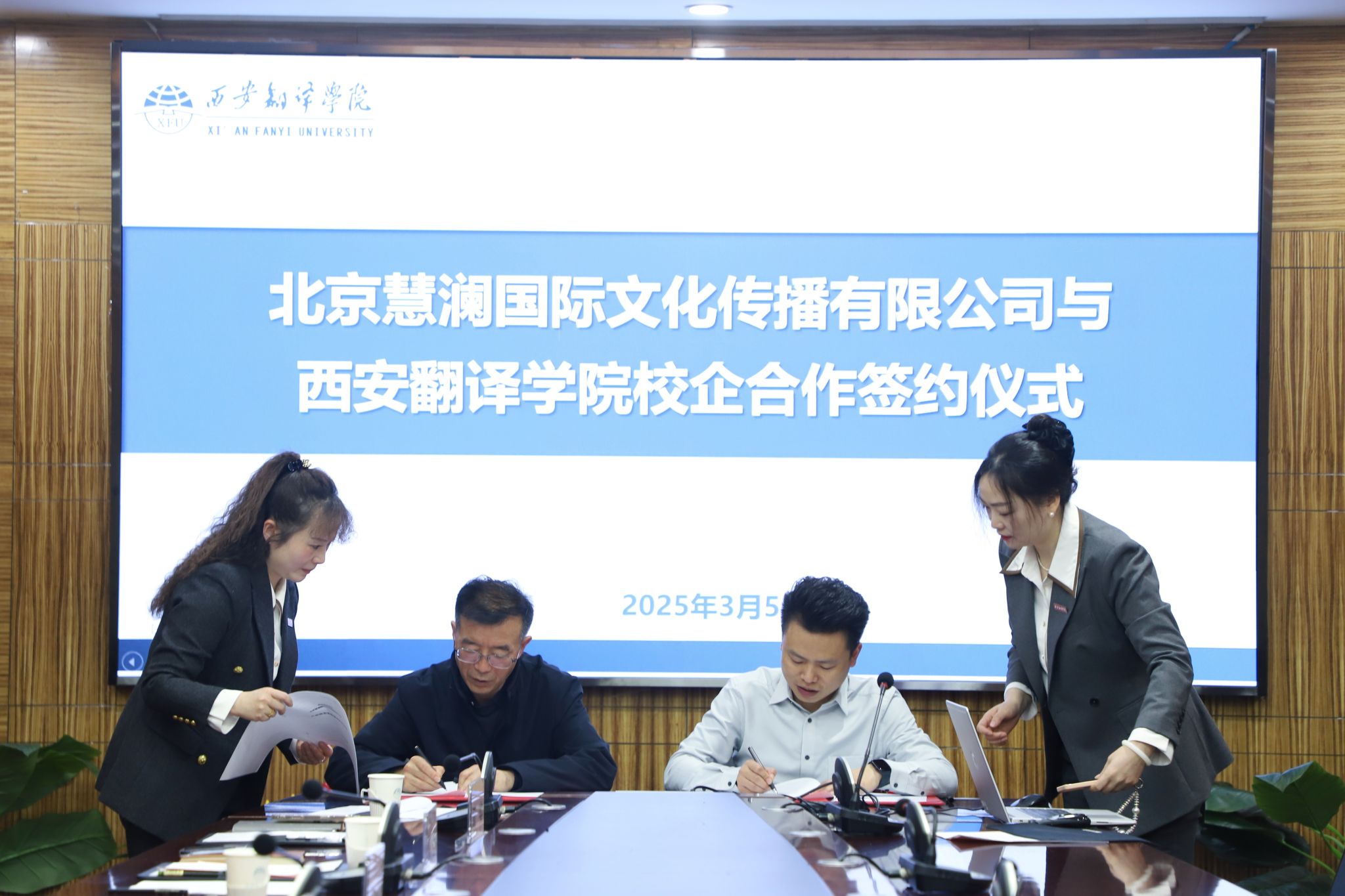 3月5日上午,我校与北京慧澜国际文化传播有限公司(以下简称“慧澜国际”)在1号综合楼会议室(二)举行校企合作签约仪式。慧澜国际总经理陈旭、学术出版经理王坤,宽邦科技校企合作事业部总监梁文忠出席仪式。副校长武忠远、王利晓,英文学院及国际语言文化学院相关领导、西安翻译协会副理事长方馨参加。科研处副处长张莹主持。