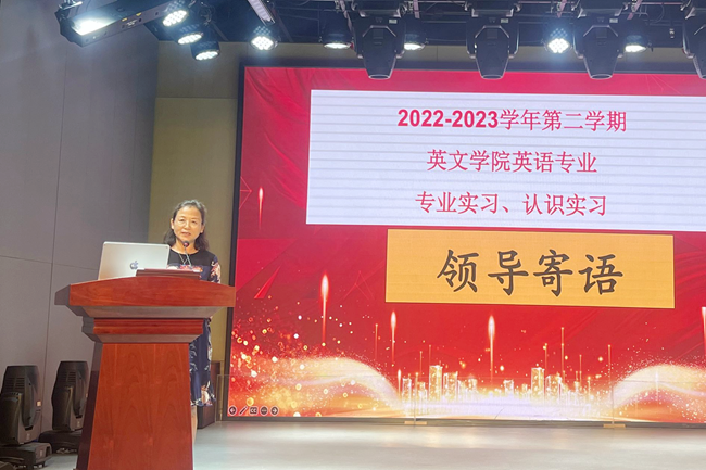 赵玲介绍了本次实习的总体情况。本学期,英文学院组织完成了8个实习单位、12个批次的实习,涉及219名专业实习生和116名专业认识实习生,涵盖了英语专业教育与翻译方向及旅游微专业。在完成多批次、多人数实习工作的同时,老师们积极拓展新的实习实践基地,新签订2个实习基地和4个实践教学调研基地,为同学们实习实践开拓更多渠道。