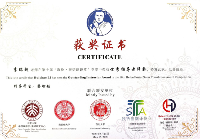 喜报|西译师生在第十届海伦·斯诺翻译大赛中荣获佳绩!