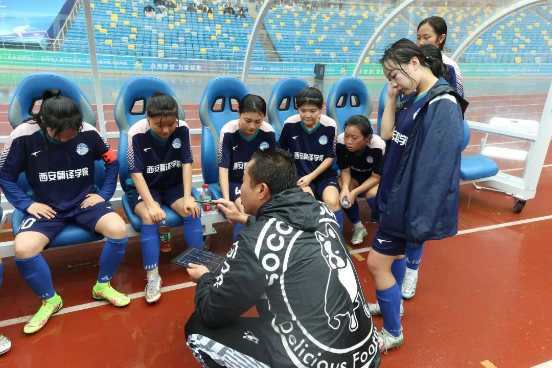 西译女子足球队于2019年正式组建并全面展开训练,在成立短短的四年时间里,却取得了三项省级比赛冠军,被称为省内女子足球队的一匹黑马。本次陕西省大学生足球联赛,西译共派出23名师生参赛,包括22名队员,1名主教练,主教练为我校体育学院教师王帝。在第六场具有决定性的冠亚军争夺赛中,面对突如其来的大雨,队员们却毫不退缩,勇往直前,首发5号、15号、23号队员带伤、发烧也坚持上场,一直拼搏到最后,展现了西译运动健儿们的团结协作、配合默契、不畏艰难、永不言弃的精神和朝气蓬勃的青春风采及学校的体育综合实力。